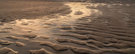 Beach sand at low tide at sunset