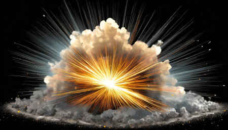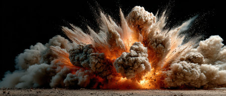 A stunning depiction of a powerful explosion, showcasing a fiery core surrounded by thick smoke and debris, creating an intense and dynamic visual with captivating energy.