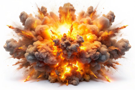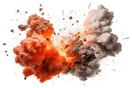 explosions and real isolated on white background. Generative AI.