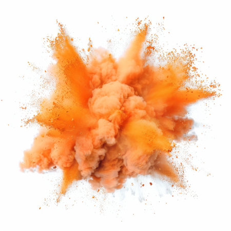 orange powder explosion on white background.