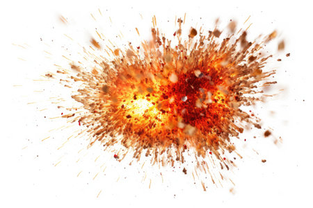 Photograph of an explosion on a white background, isolated and realistic. --ar 3:2 --v 6.1 Job ID: 719a5026-de03-4014-9170-dd25c5a1d6ae