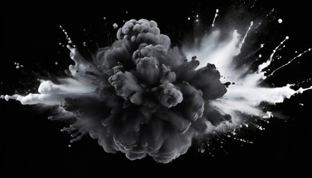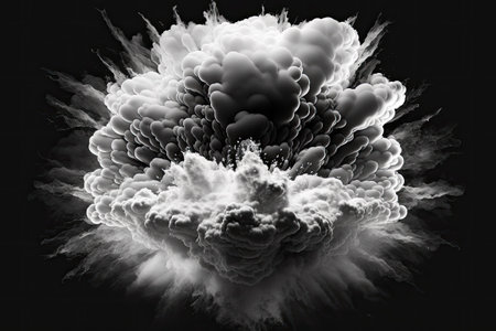 A captivating image of a dust and smoke explosion, showcasing a beautiful and dynamic cloud formation against a dark backdrop, evoking a sense of power and artistry.
