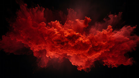 Explosion of red and orange powder isolated on black background. 3d rendering. AI generated.