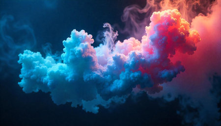Cinematic swirling smoke pattern texture in vibrant hues from a top view perspective