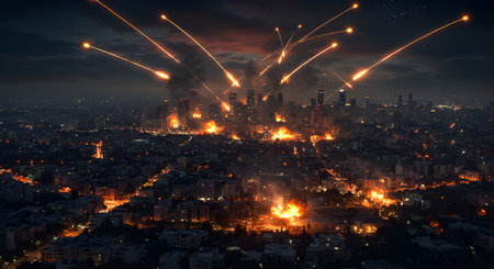Explosions illuminating night sky during Israeli military operations. Israel occupies gaza and Jerusalem