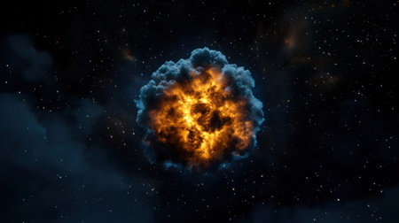 An explosion of fire in space, close-up against the stars
