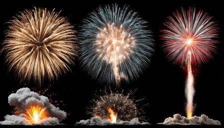 A high-quality set of realistic explosions isolated on a transparent background, showing dynamic shapes and vibrant details. Perfect for enhancing design, gaming, visual effects, and creativity
