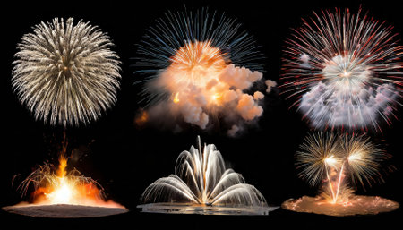 A breathtaking collection of fireworks photos Silhouetted figures stand in awe as vibrant, explosive displays illuminate the night sky Mesmerizing colors and shapes dance across the canvas, capturing the magic and wonder of these pyrotechnic spectacles AI Generative