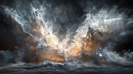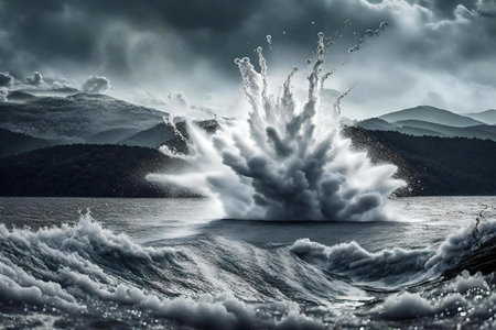 A stunning image depicting a powerful water explosion with dynamic splashes and waves. This visual showcases the beauty and energy of aquatic forces in an intense motion.
