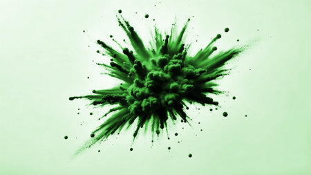 Explosive clouds of green and yellow dust with sparkling particles.