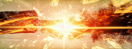 3d illustration compositing the effect of colliding fists and flame explosions on fists