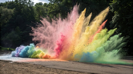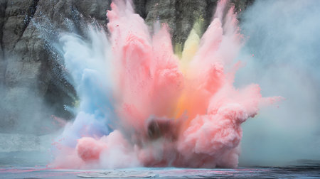 Dramatic explosion of colorful powder in industrial setting