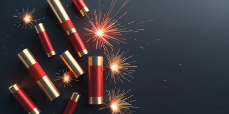 Firecrackers on black background with copy space. 3d illustration