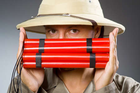 Funny safari hunter against background