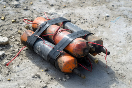 Several sticks of dynamite lie dangerously on the ground, potential hazards awaiting ignition, their explosive power ready to unleash destruction.