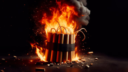 Explosion of dynamite with flames and smoke on a black background