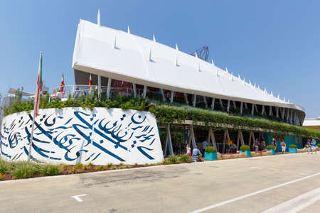 MILAN ITALY JUNE 6 2015: People visit Iran pavilion at Expo 2015 universal exposition on the theme of food feed the planet.