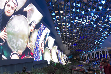 MILAN, ITALY - OCTOBER 12 2015: People inside the Iran Pavilion at Expo Universal Exhibition in Milan held in Italy from May to October 2015