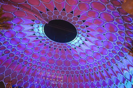 Colorful interior view of Al Wasl Plaza dome roof at EXPO 2020.
