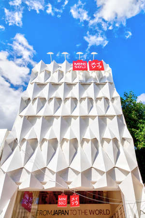 PLAYA DEL CARMEN, MEXICO - Dec. 26, 2019: Famous Japanese designer brand Miniso on popular 5th Avenue in the entertainment district of Playa del Carmen in the Yucatan peninsula of Caribbean Mexico in Cancun.