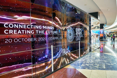DUBAI, UAE - CIRCA JANUARY 2019: Dubai Expo 2020 Screen in Dubai International Airport.