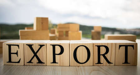 metal blocks with EXPORT business word.close up of metal blocks,Business Concept.3D rendering.