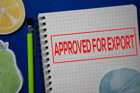 Concept of Export write on sticky notes with US flag isolated on Wooden Table.