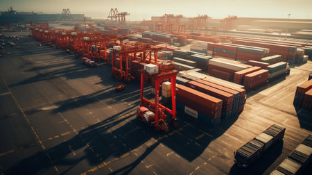 Industrial scene: containers, cranes and cargo being loaded., generative AI