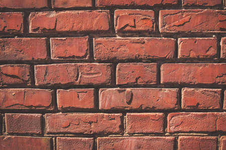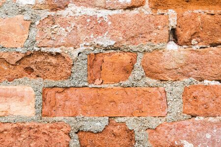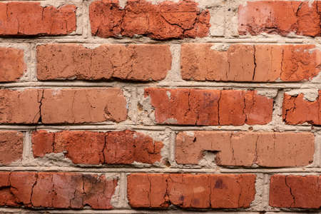 Texture of brick wall with cracked weathered structure red white color close-up .