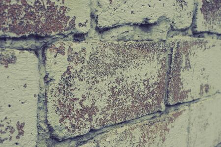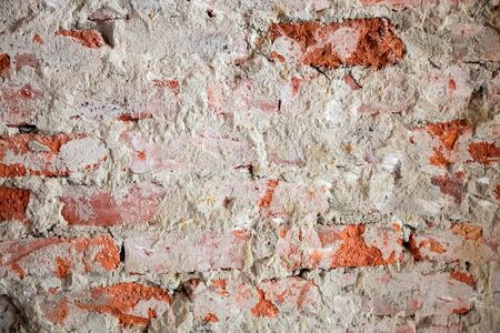 Background of old vintage dirty brick wall with peeling plaster, texture. Brick wall