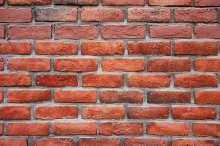 Simple red brick wall. Industrial grunge texture. Factory exterior wall backdrop. Old architecture pattern.