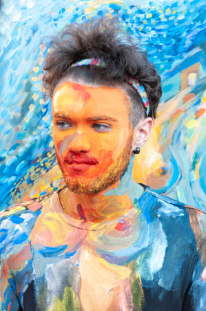 Vibrant colors and intense expression evoke emotion in a captivating artistic portrayal