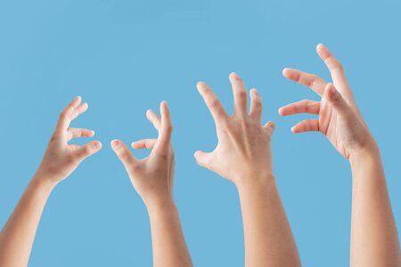 Sets the hand of the person on the blue background and isolated background.