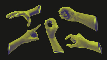 Trendy scene of hand gestures, Minimal concept, 3d rendering.