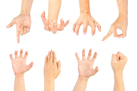 Collection of male hands isolated on white