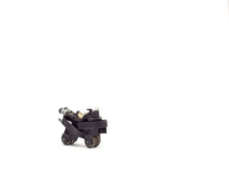 Red toy car which made from the blocks, isolated on white background with clipping path.