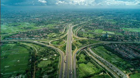 Aerial view of Expressway, Road traffic an important infrastructure of the capital. Generative Ai