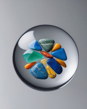 A stunning array of vibrant gems and stones arranged in a circular frame on a soft background. Perfect for creative projects, art designs, and luxury themes.