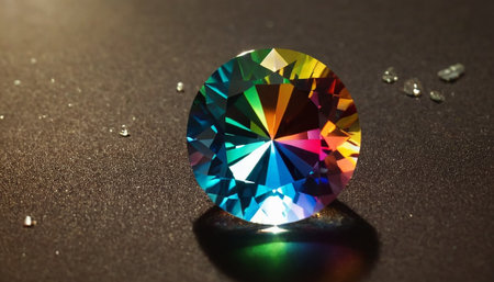 Faceted rainbow crystal gemstone with vivid reflections