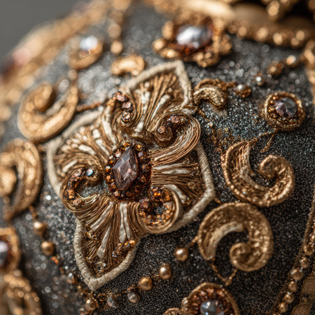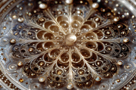 Delicate patterns and intricate details showcase a beautiful metallic design, emphasizing craftsmanship and artistry.