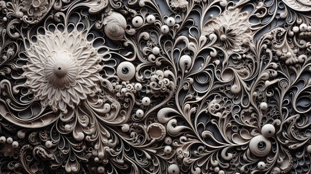 Stunning close-up of an intricate white abstract pattern featuring circular design elements and ornate textures, ideal for art enthusiasts and creative projects.