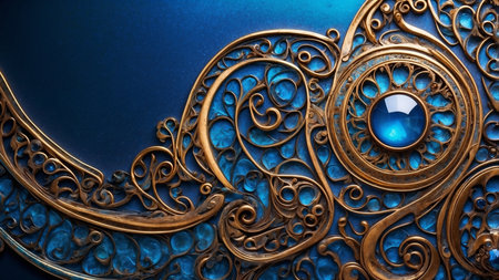 Detailed decorative pattern with gold and blue hues, highlighting intricate craftsmanship and artistic design, perfect for cultural themes and visual storytelling