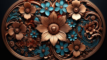 Luxury metal background with floral ornament. 3d render illustration