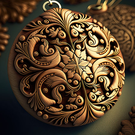 An AI generated illustration of Christmas tree toy made of wood with unique patterns