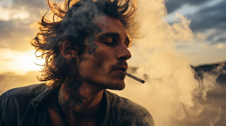 Frustrated stressed young man smoking cigarette, unhealthy habits and tobacco addiction