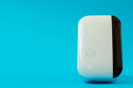 Wireless wifi repeater on a blue background close-up