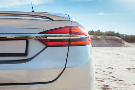 taillight of a gray passenger car standing on the sand