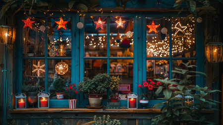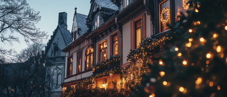 Charming winter evening with festive lights