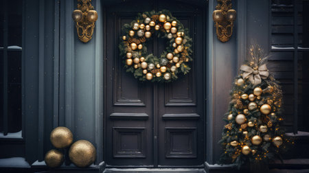 elegant gold wreath christmas illustration festive door, twinkling entrance, decor holiday elegant gold wreath christmas