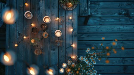Cozy terrace with outdoor string light. Generative AI illustration
